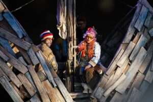 Зрители увидят ее глазами самих главных героев, только спустя много лет. Два пожилых человека – Трилле и Лена – возвращаются в свое детство, перелистывая страницы памяти. И прямо на глазах у публики седые старики снова превращаются в тех самых озорных детей, их голоса молодеют, а в движениях появляется давно забытая легкость. Этот режиссерский ход превращает спектакль не просто в рассказ о детских шалостях, а в глубокое высказывание о вечной дружбе, о том, как наше детство продолжает жить внутри нас, и о том, что самые важные истины мы часто познаем в девять лет.